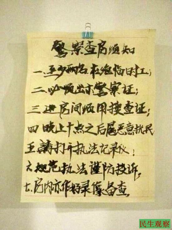 上图为:律师们贴出的《警察查房须知》