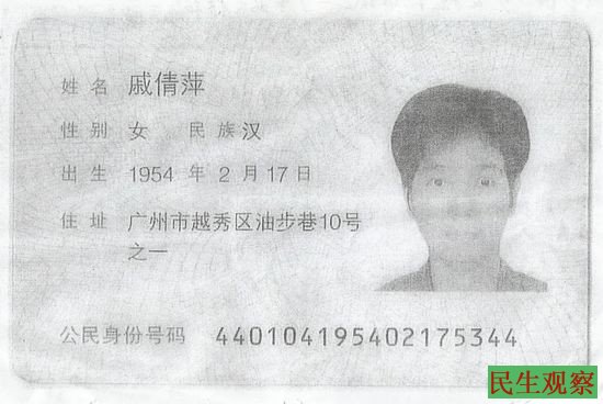 戚倩萍的材料记载,她是广州市越秀区华苑印刷厂退休工人,身份证上住址是广州市越秀区油步巷10号。故事的发生是因为她的好友谢露明两次婚姻丈夫都早早离世,谢露明受不了这种打击,患上了精神分裂症。