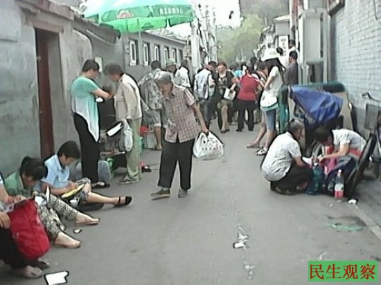 民生观察工作室2014-7-3消息:今天下午,国土资源部门外热闹非凡,到处都是填表的上访群众,他们有的坐在地上,有的爬在墙上,有的就站着拿在手里填,先填完表接待过的出来就破口大骂,中央层级就是最大的无赖,贪官。原来国土资源部接待他们就说一句话,“5.1前来的太多了,现在就不登记了。”访民们猜测是不许越级上访的新规定造成的。