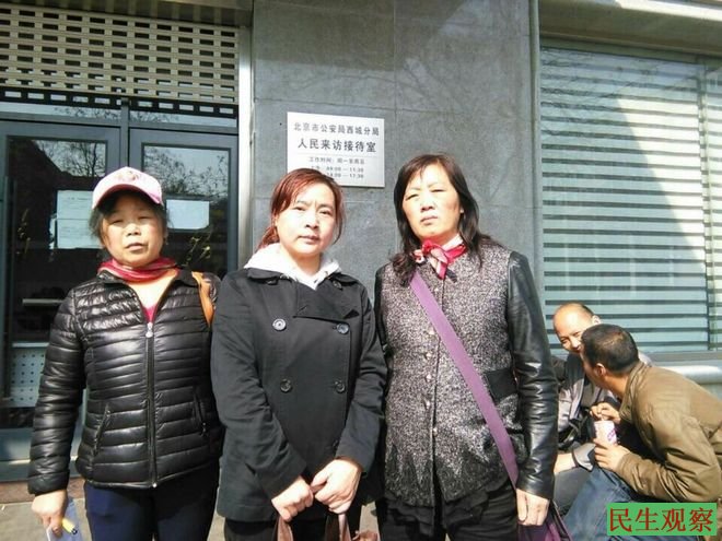 郑明荣说,由于西城分局来人众多未排上队,三人今天未获接待与受理,但三人表示她们会就此继续讨说法。