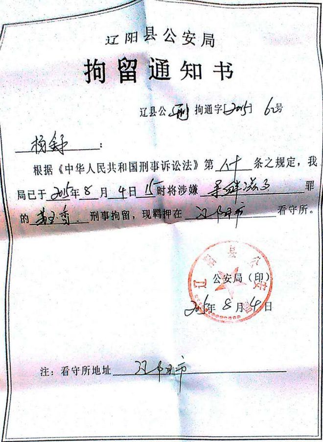 8月4日,苏玉香、杨国巨的女儿杨舒收到了父母的刑事拘留通知书,罪名仍是寻衅滋事罪。