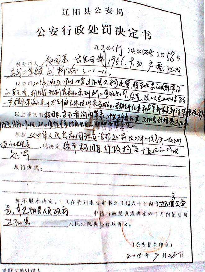 民生观察工作室2015/8/7消息:苏玉香、杨国巨夫妇是辽宁省辽阳县的访民,2015年7月27日中午12点35分,二人从北京485路公交车红房子站下车时,到京的辽阳特警车下来10多人将二人抓上车,当天就带回了辽阳县,28日宣布二人因涉嫌寻衅滋事各行政拘留15天,具体事由是二人长期滞留北京,在中纪委监察部缠访、闹访。