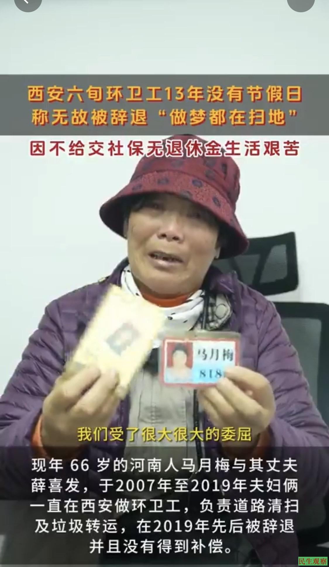 西安六旬环卫工被无故辞退无社保和退休金 |