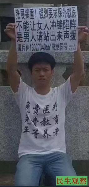 据悉,谭兵林是湖南省祁东县人,新公民。曾参与推动教育平权运动、倡导俗称“三免”的免费医疗、免费教育、免费养老;多年来一直做义工参与为良心犯送饭、呼吁等公益活动。