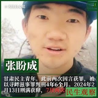 2024年2月14日,张盼成刑满释放。随后一直被软禁在甘肃省庆阳市合水县老家。