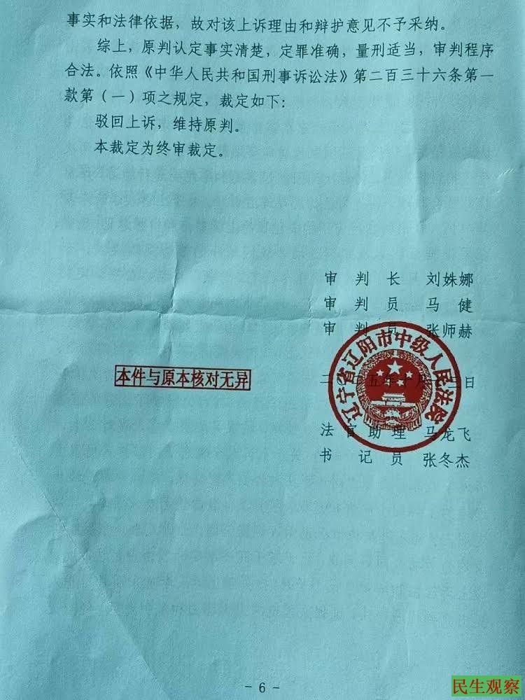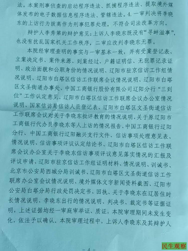 【民生观察2025年10月27日消息】辽宁省辽阳市白塔区维权人士李晓东一审被以寻衅滋事罪判刑二年,其不服判决递交上诉申请。近日案件二审宣判:驳回上诉,维持原判。