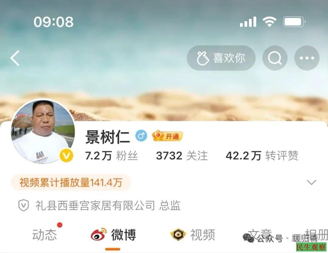 农村出生的景树仁,憨厚老实,是兰州新区一家公司的职工。工作闲暇之余,他常常浏览新闻,渐渐地喜欢上了微博。看到实时热点,他喜欢在评论里谈谈自己的观点;遇到弱势群体遭遇困难,他常常帮助爆料,赢得了网民的喜爱,微博关注人数已激增至4万余人,大家都亲切地称他“景老师”、“景大哥”。随着微博关注度越来越高,他也结识了许多媒体大咖,在他们的鼓励和指导下,景树仁的微博越做越好。