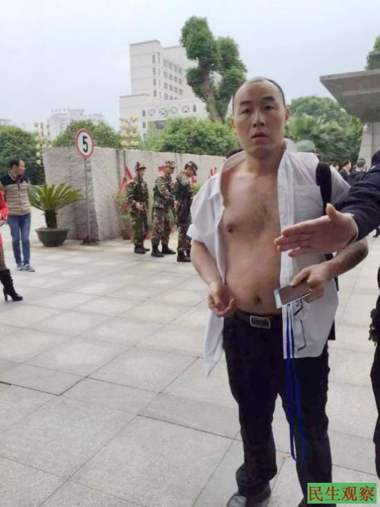 据刘金滨律师消息称:2015年4月21日早晨8:15分,我从住宿的酒店走向衡阳市中级法院,远远听到喊叫声,我加快脚步赶到法院门口,看到有大约上百人在大门口。王甫律师被十多人围攻,我刚开口呼喊即围上七八人对我殴打,辱骂,打掉了我的眼镜,撕扯我的西服,衬衣被撕坏。我我大声呼喊,几个法警无动于衷。我的包被夺走扔掉。王甫律师几万元的西服和内衣全被撕烂,上身完全赤裸。张磊律师见我被围攻,远远赶来拍照,被七八人爆打,多处有伤痕。难道这是,因昨天律师们对衡阳市政府发布的《关于衡阳周氏家族案回应》文告的质疑后的报复吗?法治湖南?