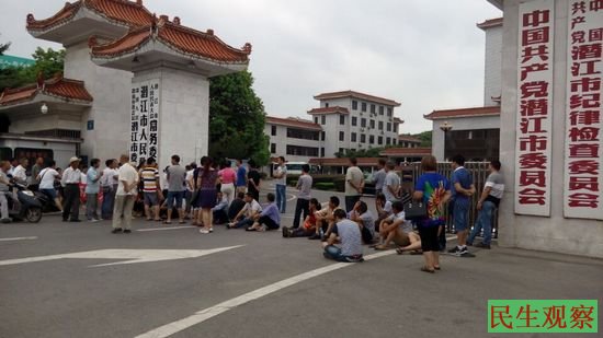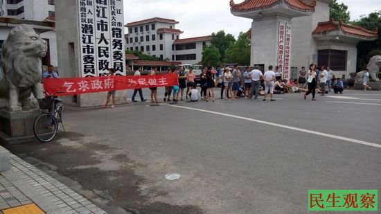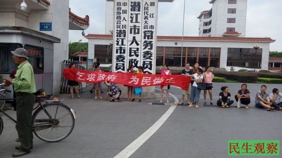 民生观察工作室2015/8/10日消息:今日湖北华罡公司50多人来到湖北潜江市政府,要求赔偿他们集资款被骗的事情。而同时,湖北潜江市棉纺厂下岗工人80多人也相约来到市政府要求解决养老保险与医疗保险、退休金等问题。在加上一些其它事情的诉求围观者,今日一度把市政府围成铁桶。