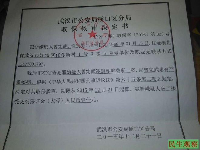 曾宪武的取保书。