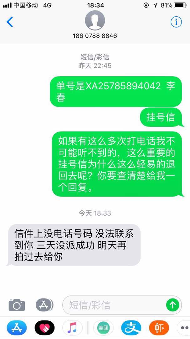 据李春说:“一封来自于湖北荆门市公安局月亮湖分局,单号为XA257894042邮寄给李春的挂号信,2018年12月30号邮寄出来,竟然12天才送达我的手里,并且是在我再三追问邮递员的情况下,才得知信件曾经被退回过湖北荆门,这显然很不正常。”