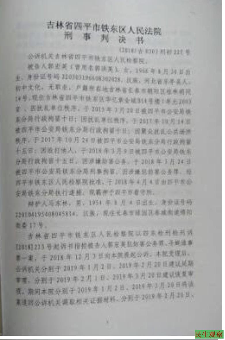 2019年4月18日,其案在吉林省四平市铁东区法院开庭受理,两天后被以“妨碍公务罪”(判1年6个月)、“寻衅滋事罪”(判4年),二罪并罚共计五年六个月,最终执行实刑。