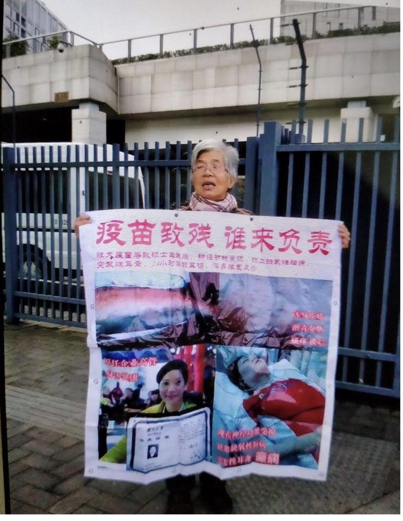 2月11日,华秀珍和疫苗受害者在北京,准备起诉国务院和国家卫健委,被北京上海两地维稳人员联合抓捕。