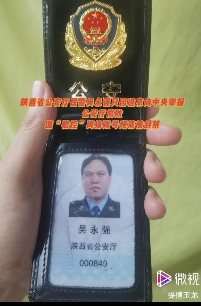 【民生观察2024年1月10日消息】陕西省公安厅民警吴永强只因进京向中央举报公安厅腐败遭“稳控”,网络账号频繁被封禁。吴永强表示,现在举报腐败遭腐败者打击报复在中国已成为常态,试问谁来保障宪法赋予公民的举报权?!