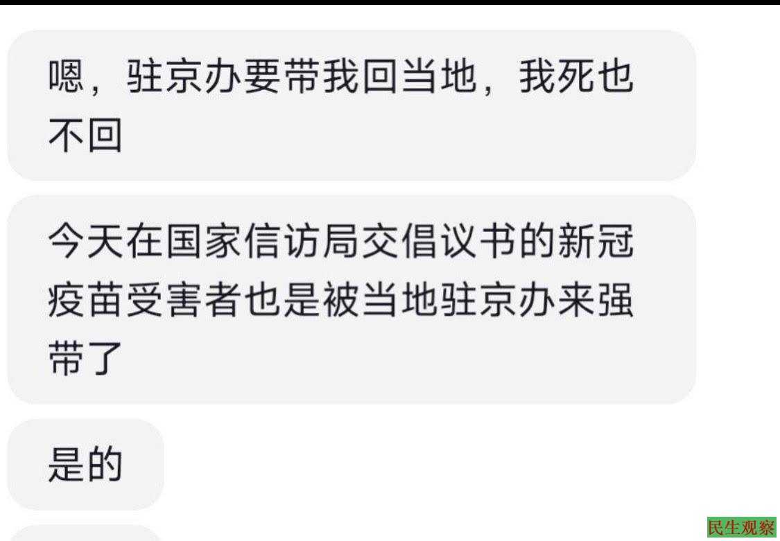 新冠疫苗受害者进京信访被阻止递交倡议书