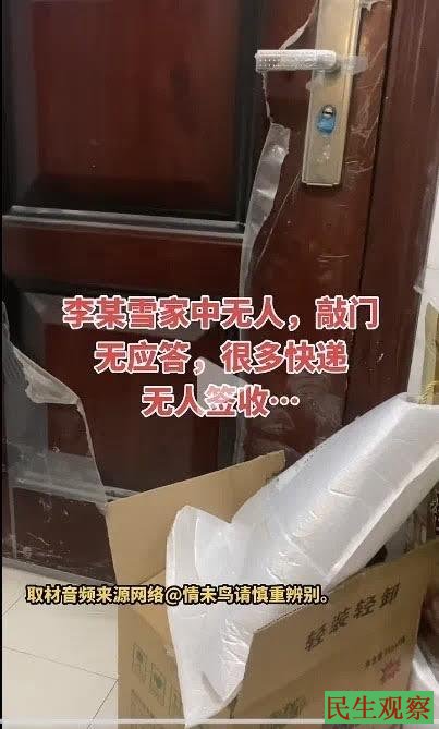 李宜雪的好友们纷纷试图联系李宜雪,无任何回应。有网友直接跑去李宜雪家里敲门,同样无应答。大门口,留下无人签收的快递。