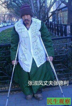 张德利去中南海找习近平主席反映,因他被人故意殴打致残,且凶手的哥哥是顺义区公安分局副局长闫志刚,可谓官官相护,并不惜一切手段迫害张德利一家。曾多次给他非法拘禁、拘留,给他妻子劳教两次。在2013年11月25日,又被非法暴力野蛮强拆,其夫妻曾多次去中南海,张德利已被顺义公安分局非法拘留27次、刑拘3次,而其妻张淑凤共被非法拘留9次,刑拘1次,劳教2次。