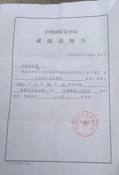 刘振刚因秘密筹组政党,于2022年9月30日被四川省泸州市国家安全局以涉嫌颠覆国家政权罪执行逮捕,后被判刑5年6个月。