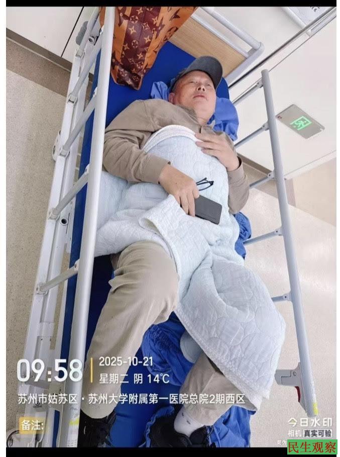 【民生观察2025年10月22日消息】近日,江苏省苏州市姑苏区维权人士吴其和惨遭苏州黑恶公权的迫害。因此前吴其和一直在举报控告当地派出所和街道办滥用职权、伪造公文、构陷罪名、对其打击报复,吴其和家门口长期有政府雇佣人员进行看守,只要吴一出门就被这些人员跟踪盯梢。昨日,吴其和出门照例被这些人跟踪盯梢,因他们追赶吴其和,导致吴摔倒在小区的绿化草坪上,造成腰部骨折。