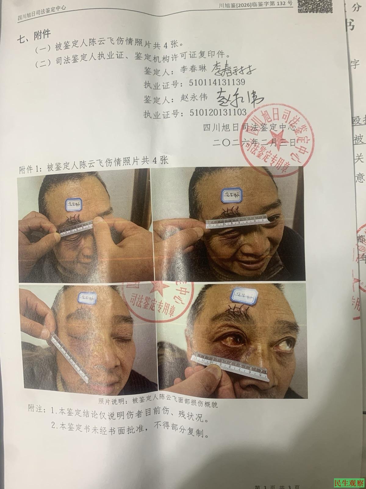 【民生观察2026年2月10日消息】2026年2月8日陈云飞在所住的小区遭到暴徒殴打。目的就是要其禁声及搬离犀浦镇。