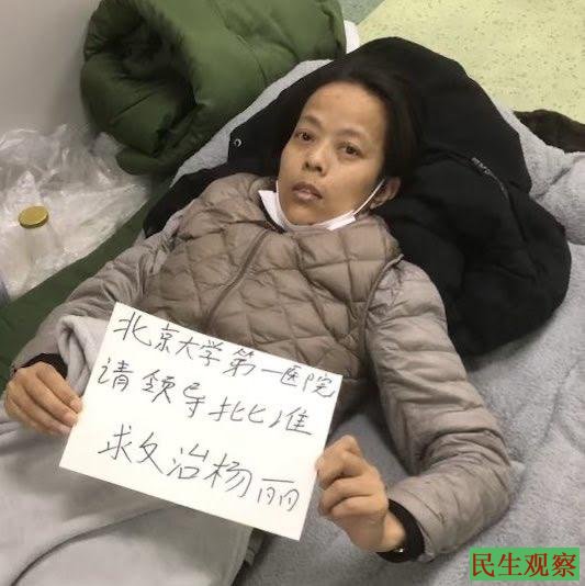经国际社会关注,杨丽和父杨国良母许冬青于2026年2月11日到达北京大学第一医疗就医,但因遭人为干扰,医院在开具住院治疗通知书的情况下,始终拒绝对杨丽进行收治。20天后的3月3日凌晨3点半左右,杨丽和父母被金坛便衣警察强行绑回江苏常州。