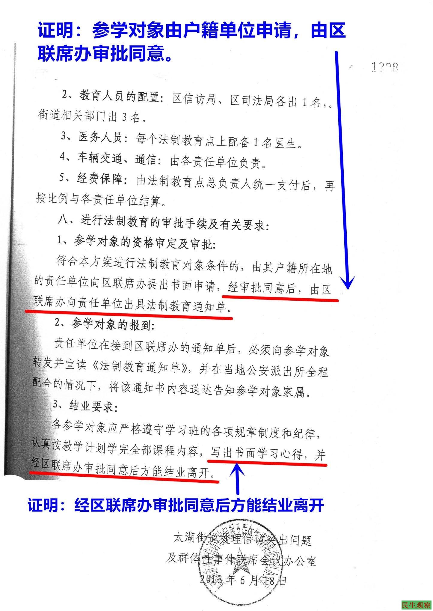 一、强制性。从第1项《关于对信访人进行法制教育的方案》“参学对象的报到”中“并在当地公安派出所全程配合的情况下”,以及第7项《无锡市信访群众法制教育学习通知单(本人)》中“必须”二字,体现了学员必须无条件服从。