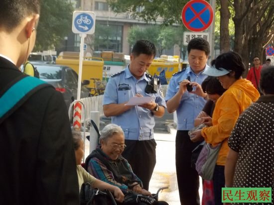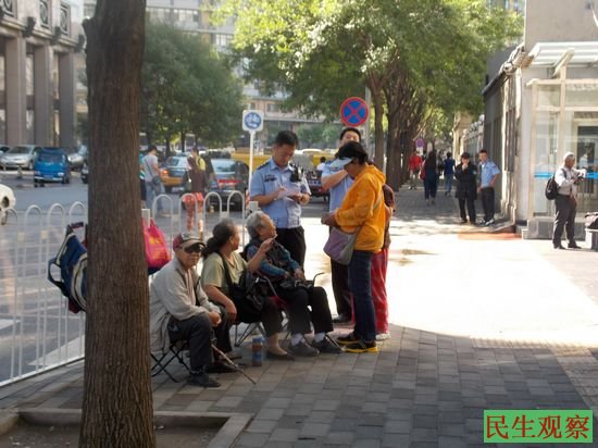 不惧清场外交部前静坐继续 连拖带拽老太太们坚守阵地
