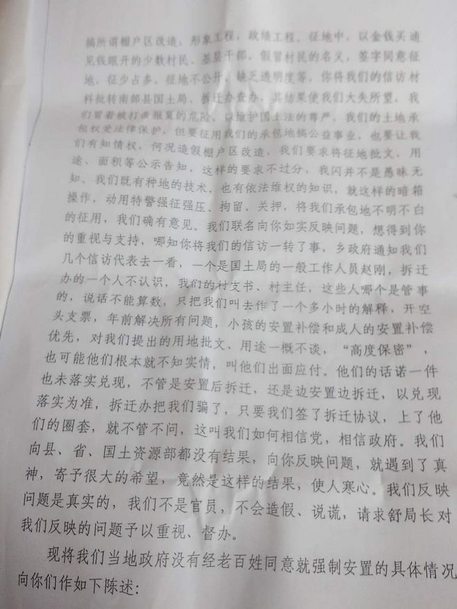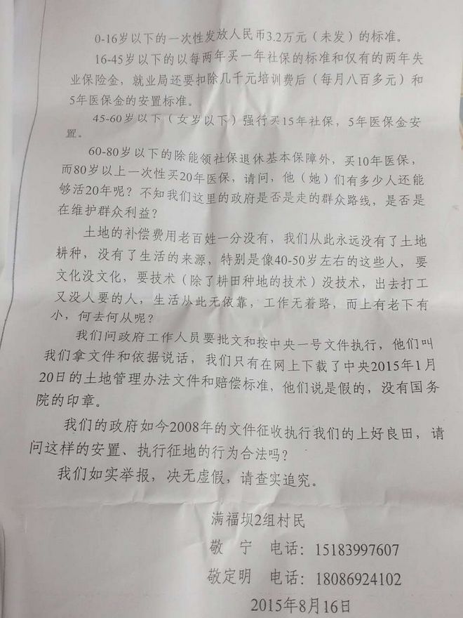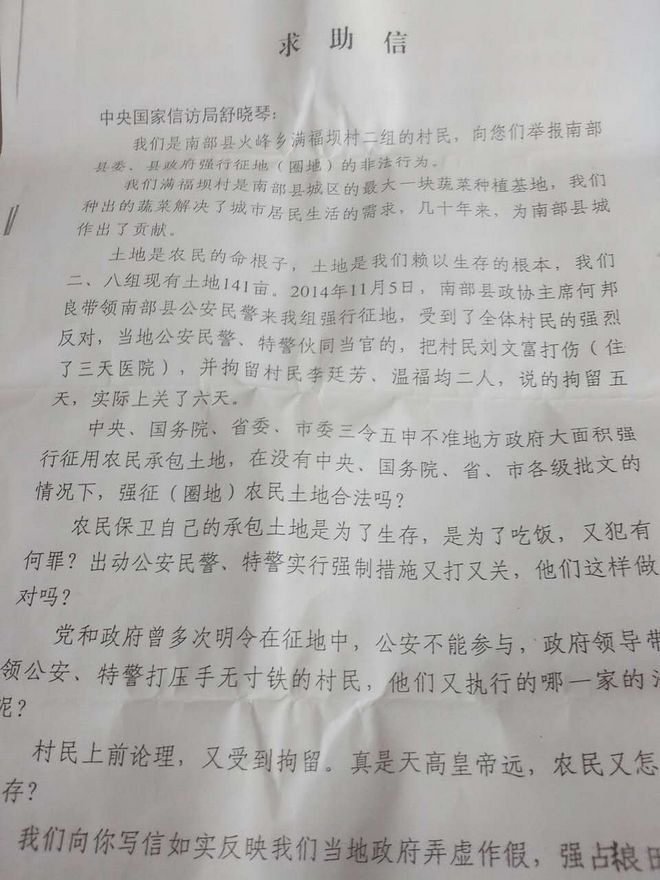四川省南部满福坝村失地农民的求助信