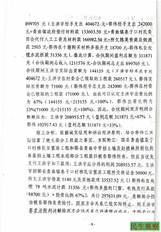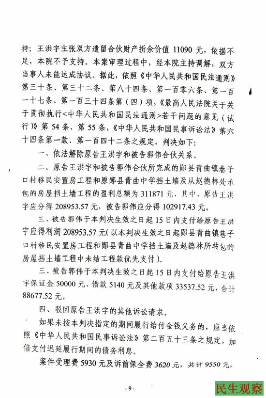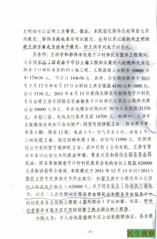 湖北省郧县王洪宇的民事判决书