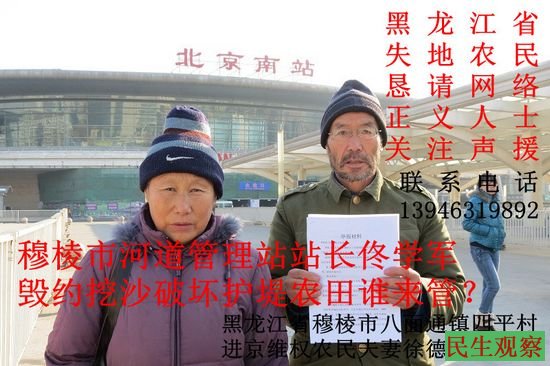 2011年,自从佟学军当上河道管理站站长以来,他与穆棱市水务局付(姓)局长(一把手)上下勾结,强行毁约,将我们农民承包的农田毁坏,用于非法采沙,牟取不当利益。仅仅两年多时间,将我们投入巨额金钱修复平整的河堤外农田和大堤破坏,累计毁坏农田150多亩。大堤被挖的坑坑洼洼,整个大堤根基损毁严重,严重威胁了防洪大堤的安全,其主要问题如下: