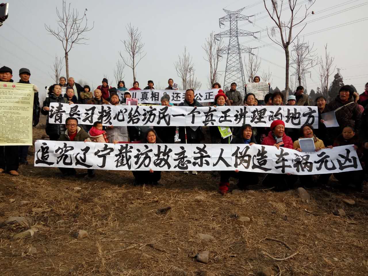 [访民之声2016/11/24消息] 今天在京访民张打条幅,强烈要求公布辽宁当局公开辽宁沈阳访民陈沈群,被截访人员强制返乡途中遭遇“车祸”死亡的真相,抗议截访致人死亡。