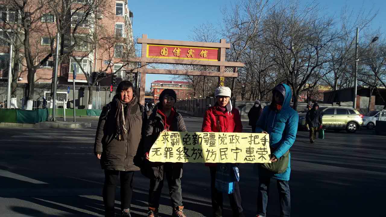此外,吴继新等人也向新疆当局提出要求,释放新疆访民宁惠荣,解决宁惠荣过冬棉衣的问题。他说,宁惠荣G20期间被新疆党政人员强制带回新疆,关在一家医院,前几天宁惠荣还打电话说,到现在还是穿的夏天的衣服,也不让他刷牙,洗澡,还不如在监狱的日子好过。我们强烈要求新疆当局释放宁惠荣,不要继续迫害访民。