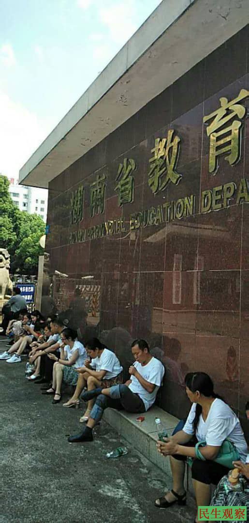 今天,他們中的一部分人却上街了!他們在湖南省教育厅大门静坐、请愿和演讲!