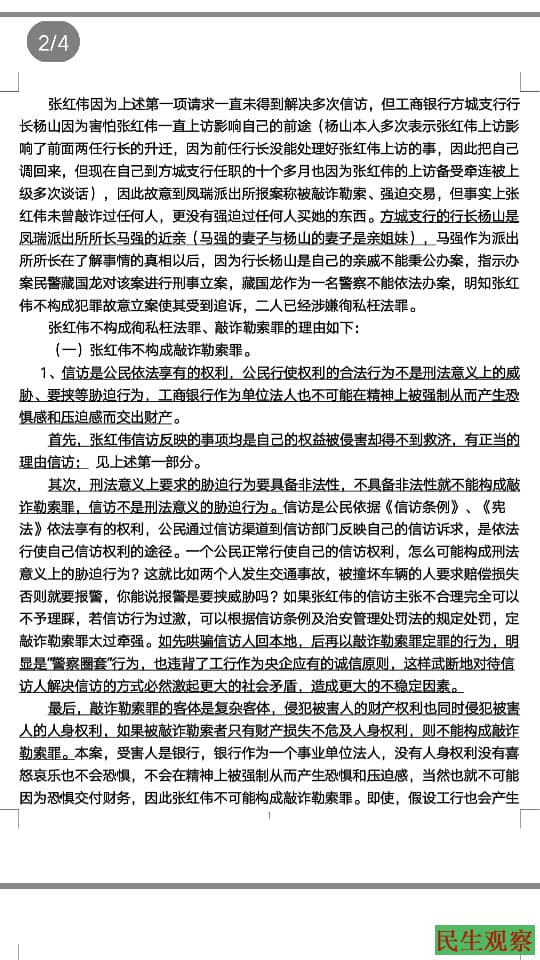 各位段友大家好,我是张红伟的家属。红伟的事情大家可能已经听说了,她是被当地工行行长杨山污蔑陷害,至今被关押在当地看守所,我们连见她一面的机会都没有。红伟被押回来后,当地公安不想管此事,是工行行长杨山非要以勒索敲诈罪给红伟判刑。我们曾三番五次的去找杨山,希望他能把污蔑红伟的材料撤回,他嘴上答应的好,背后却联合他人制造更多的伪证。我们走投无路只好请律师介入,谁知他知道后,也请了律师,与我们对抗!