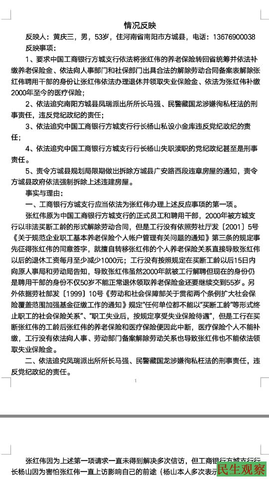 昨天,红伟的材料已被递交检察院,再过几天可能就要被判刑,我们已委托律师写了份材料为红伟辩护,以及举报杨山违法建筑和私设小金库,我们拿他没办法,就让法律制裁他!希望各位段友,在省信访局和北京信访局的,把这几份材料递交上去,帮帮张红伟,还她清白帮她讨回公道!!!