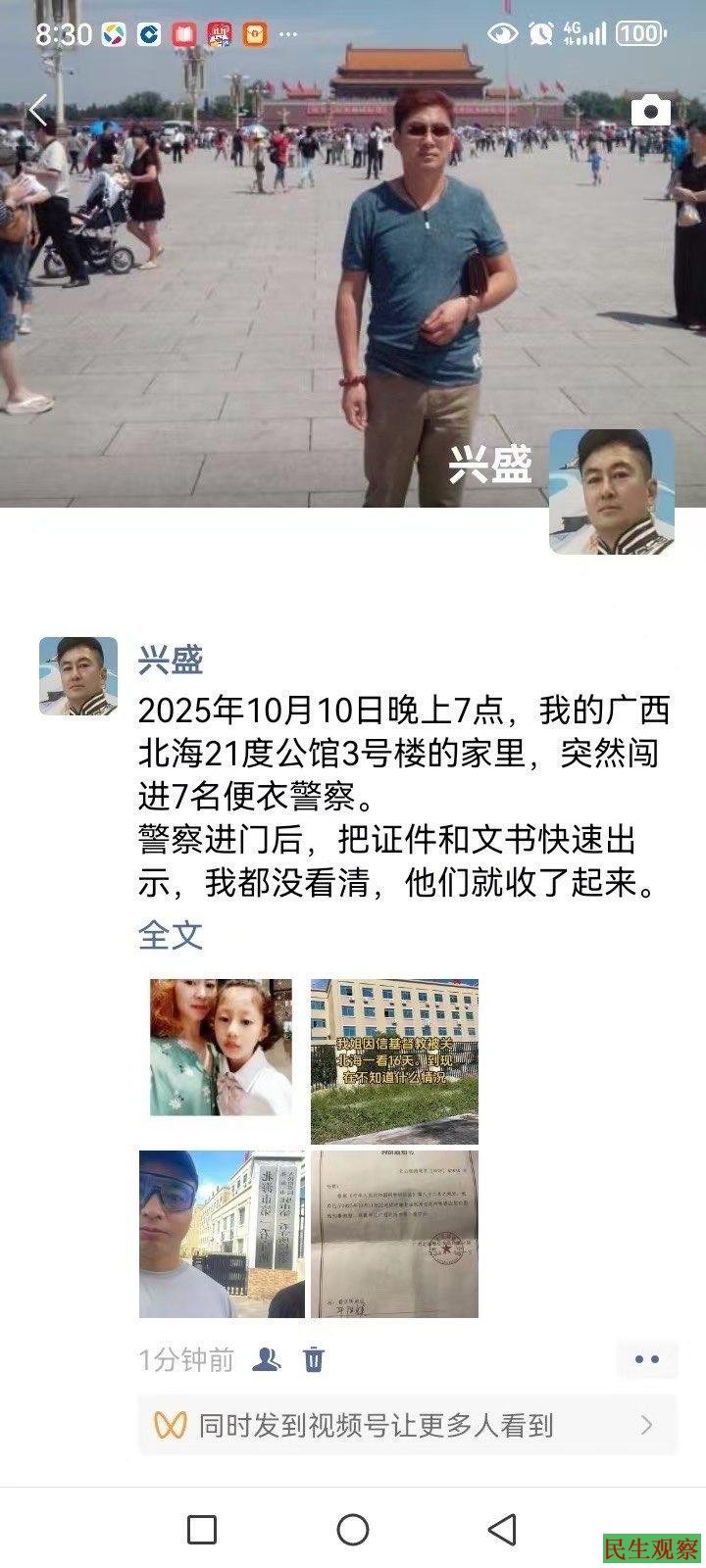 因为实在不知道发生了什么,我们赶紧聘请了律师。律师13日到了北海,跟看守所联系,直到2025年10月15日才接到通知可以会见。