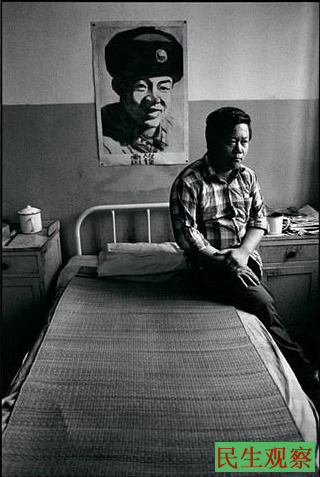 精神病院 万有胜,40岁,小学美术教师,墙上挂的是他画的雷锋像 天津 1989