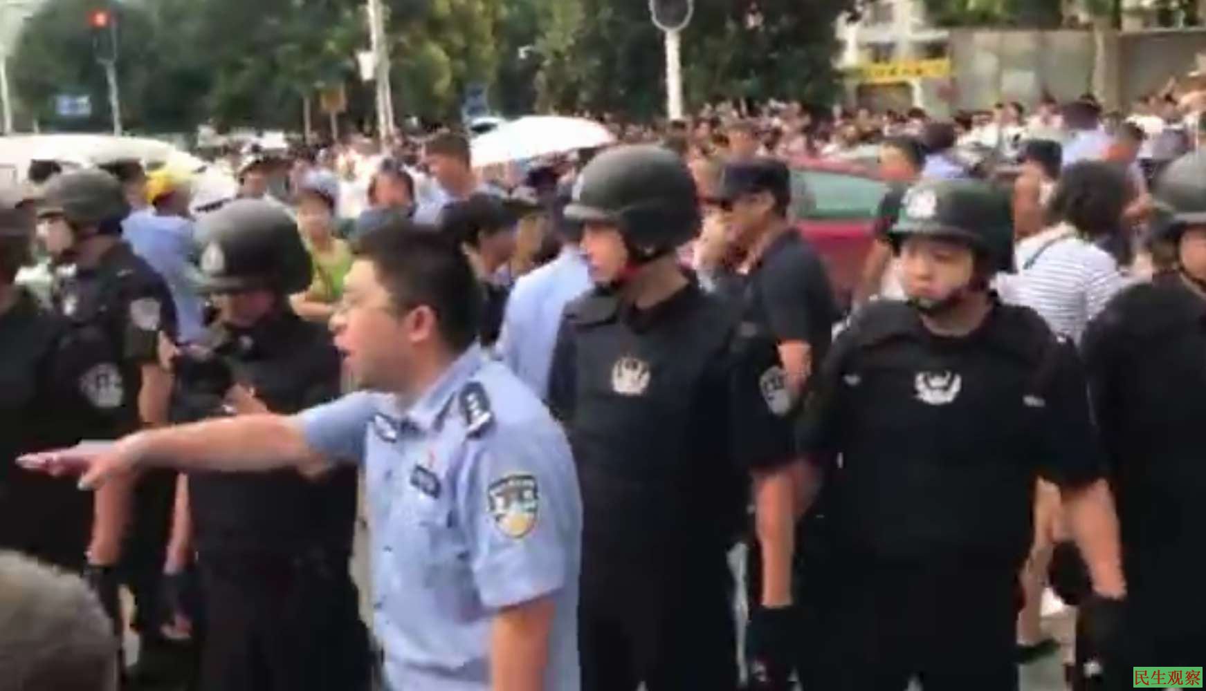 【民生观察2018年9月5日消息】本网获悉,湖北武汉光谷开发区关山大道附近数千居民,因反对政府在居民区兴建110千伏变电站,于9月5日上街抗议,警方随即派出了数百名警察前来驱赶,过程中有一位老人被推到在地,引发大量群众与警方爆发冲突。