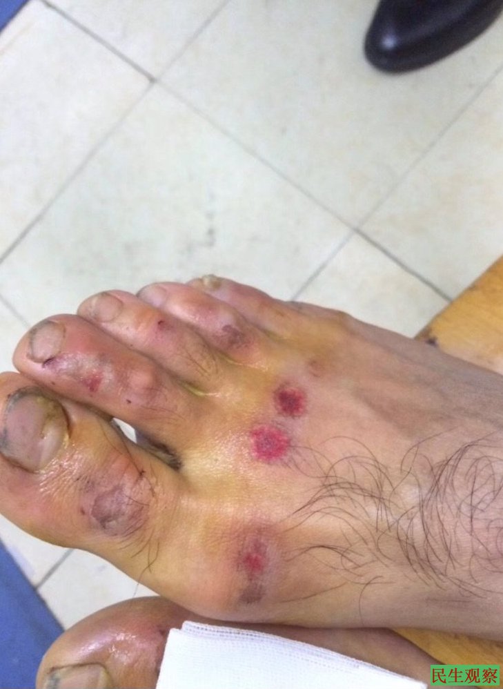 另外,一些长老、执事、同工和弟兄姊妹被警察强行带走,甚至有的遭受了暴力对待,身上伤痕累累。虽相继回家,但他们却仍旧处于专人监控之下。据三位已经被放出来的弟兄姊妹讲诉,他们被抓进派出所后被警察施暴,甚至用脚踩踏,其中一位弟兄深夜一点被绑住手脚拖走,羁押一整天,腿部多处被折磨出血,身体多处受伤。这些恶行令人发指。一位弟兄说他被关的24小时内警察没有给他吃一口饭,没有喝一口水,被剥夺休息时间,整晚被绑在椅子上只睡了两三个小时。