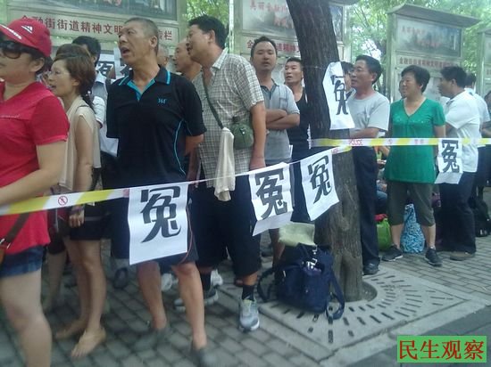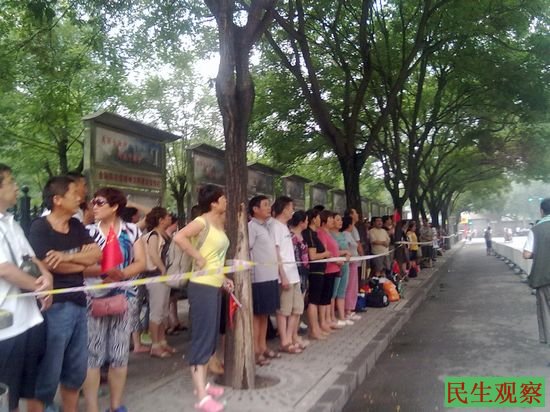 民生观察工作室2013年7月28日消息:昨天,滞留在久敬庄内多日的全国四大银行买断职工五、六百人从久敬庄内出来后,和外面的“断友”又汇合在一起,昨天上午到了工商银行总行,大家在那里高喊口号,讨说法。以下是昨天的现场图片: