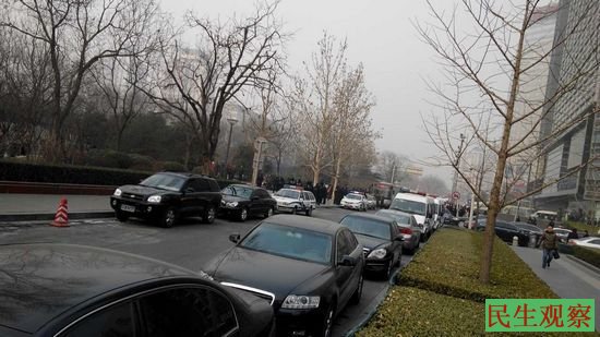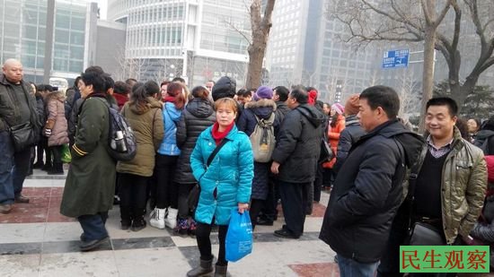 伍丽娟说职工们无法靠近银监会,就在银监会周边聚集,聚集的人群排的队伍有一公里多长,人数估计达上千人。