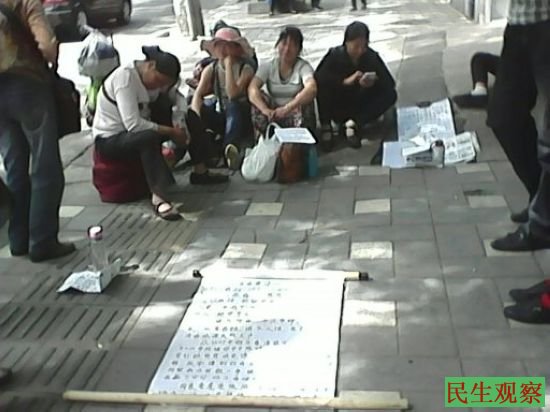 访民摆地状抗议中央政法委门前不照常登记