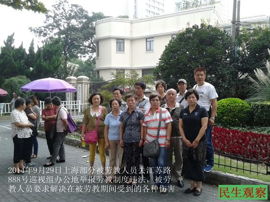 上海的问题堆积如山,巡视组常期驻沪也难以揭开。9月29日下午,上海部分在维权中被劳教维权人士到巡视组举报、控告上海市政法委与公安局对维权人士以劳教打击迫害的累累罪行,要求依法追究相关官员违法犯罪的刑事责任,并对受害者给予赔偿。被非法劳教迫害的维权人士认为:日本法院一直以“国家无答责”拒绝侵华时期对亚洲其他国家人民的被劳工赔偿与被慰安妇赔偿,中国当局是否也会对遭受非法劳教的受害者以“国家无答责”拒绝赔偿呢?