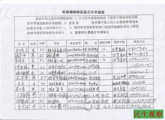 陕西西安70余访民向财政部申请信息公开