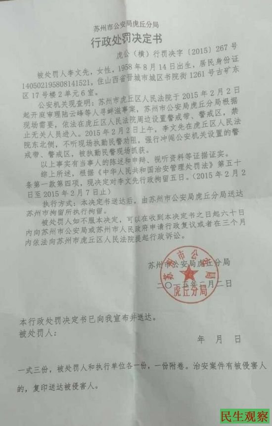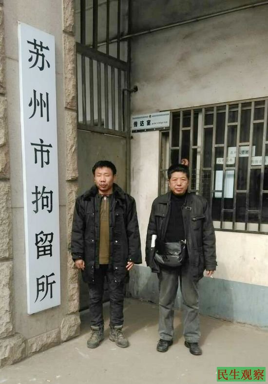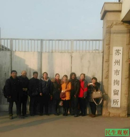民生观察工作室2015-2-8消息:今天,维权人士梁艳、李延香、武志钢、胡新建、尹旭安等人再次来到苏州市拘留所迎接因声援范木根被拘留的同仁。据维权人士尹旭安告诉本工作室,昨天,他们已经将拘留5天期满获释的公民王芳、孙东生、李文先、“老道”四人迎接出来,今天他们再次去迎接被拘留七天的孙涛时,拘留所方面却不肯释放。大家估计,最少要等到下午警察下班之时或者明天,孙涛才会获释。
