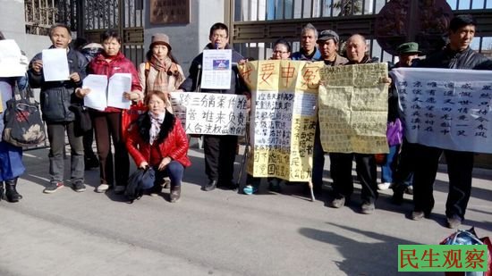 今天,她与各地的访民一起到北京最高人民法院上访,但是最高法却不接待他们,对此他们在最高法门口进行了举牌抗议。