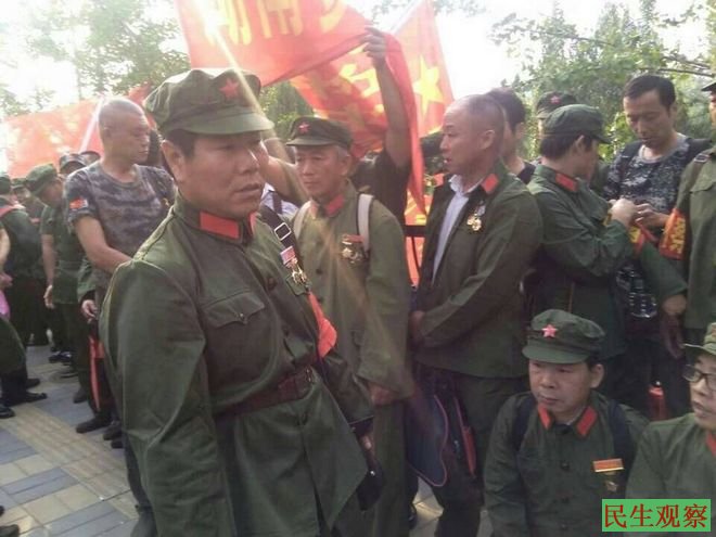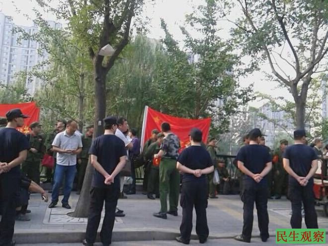 民生观察工作室2015/9/21消息:今天上午,在国家信访局,数百参战老兵代表打着写有各地的紅旗在抗议示威,现场布满的警察和特保把他们包围起来。