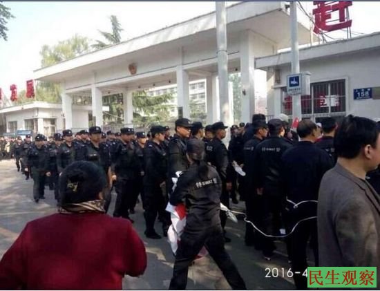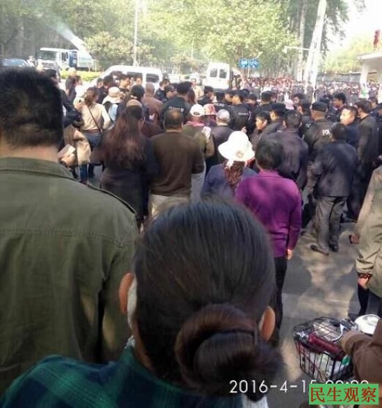 民生观察工作室2016/4/15消息:今天,河南濮阳集资诈骗案的数百受害者在濮阳市政府门前维权,大批警察现场进行维稳,多人被警方抓走,一人割腕抗议。