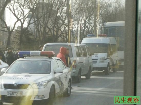 在场访民告诉本网人权观察员,国家信访局门外的马路上挤满了老兵,各地的截访人员和警察、保安围在周围,有的截访人员试图把自己辖区的老兵从队伍里拉走,被其他老兵呵斥,截访人员唯恐引起众怒只好罢手,警察把老兵往公交车上赶,看到拉走了一车。