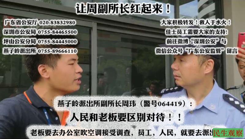 该副所长的意思就是:老板要去办公室吹空调接受调查,而员工、人民就要去派出所问话。此话一出,立刻引起现场工友们的愤怒,大家纷纷提出疑问,在群情汹涌之下,该副所长最后直接撂摊子走人离开了现场。